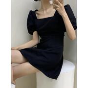 • 宝贝名称: 韩国连衣裙收腰夏新款气质法式小黑裙方领泡泡袖小个子显高a字裙