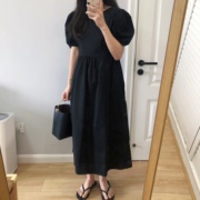 • 宝贝名称: 韩国东大门代购 黑色 复古泡泡袖 中短袖 长款黑色连衣裙