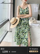 • 宝贝名称: 法式性感绿花连衣裙女2021夏新款V领气质开叉吊带花印裙奢华大牌