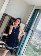 • 宝贝名称: 代购miumiu缪缪夏季新款海军风甜美减龄连衣裙钻扣装饰百褶背心裙