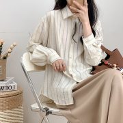 • 宝贝名称: 夏季薄款竖条纹衬衫外穿女大码宽松设计感小众轻薄防晒上衣空调衫