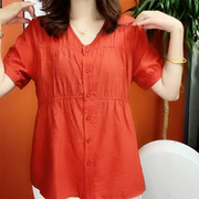• 宝贝名称: 新款净色棉麻小衫女短袖纯色打底衫减龄时尚百搭显瘦轻熟风妈妈装