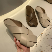 • 宝贝名称: 热卖新款手工编织包头平底软底凉拖文艺复古牛皮平跟半拖鞋小众女