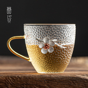 • 宝贝名称: 器货锡花锤纹玻璃茶杯家用功夫茶具主人杯子带把品茗杯水杯子酒杯