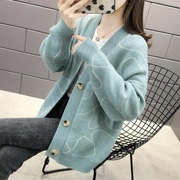 • 宝贝名称: 岩石纹V领针织开衫女2021秋季新款韩版宽松上衣加厚显瘦毛衣外套