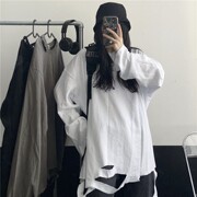 • 宝贝名称: 春秋新款上衣女韩版ins破洞白色打底衫百搭宽松学生长袖t恤潮炸街