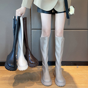 • 宝贝名称: 白色长筒靴女夏2021年新款网红时尚百搭后拉链圆头高筒厚底骑士靴