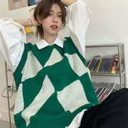 • 宝贝名称: 不规则格子拼接衬衫针织毛衣马甲背心女春秋冬宽松外穿套头慵懒风
