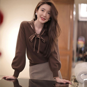 • 宝贝名称: 轻奢 一衣两穿给到你不同的两种风格 羊毛套头打底衫飘带针织衫女
