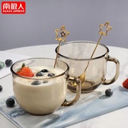 • 宝贝名称: 茶色燕麦杯早餐杯带盖勺酸奶家用套装玻璃杯咖啡耐热大容量牛奶杯