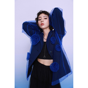 • 宝贝名称: 杨二大梦原创重工复古克莱因蓝双层网纱玫瑰西装外套女2021秋新款
