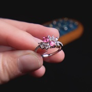 • 宝贝名称: 双生花 天然尖晶石热粉色戒指 18k金伴钻镶嵌红宝石