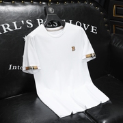 • 宝贝名称: 夏季丝光棉短袖T恤男士欧货潮牌字母刺绣圆领格子半袖大尺码打底衫