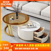 • 宝贝名称: 岩板茶几轻奢圆形极简客厅家用小户型简约北欧组合现代抽屉伸缩桌
