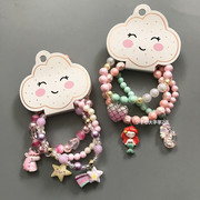 • 宝贝名称: 出口欧美原单儿童圆珠手环彩色公主小马贝壳王冠弹性皮筋手链实拍