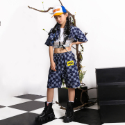 • 宝贝名称: 女童牛仔短袖衬衫套装男童街舞潮装走秀爵士舞架子鼓表演演出服夏