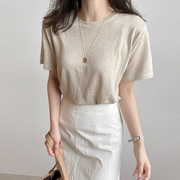 • 宝贝名称: 薄款米色圆领短袖宽松T恤女上衣白色面膜T夏季微透打底衫百搭简约