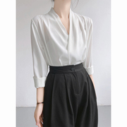 • 宝贝名称: 高级感V领缎面衬衫女长袖2023春秋装设计感小众内搭休闲职业衬衫