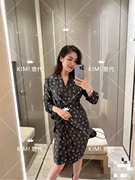 • 宝贝名称: 代购MaxMara气质V领拼色翻领黑底印花真丝系带褶皱长袖连衣裙