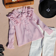 • 宝贝名称: 2022秋款女童韩版花边领长袖衬衫中大童蝴蝶结系带衬衣学院风套装