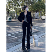 • 宝贝名称: 黑色马蹄牛仔裤女春秋新款高腰修身显瘦垂感加长弹力微喇叭裤子