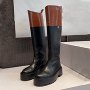 • 宝贝名称: 2022秋冬新款英伦圆头拼接拼色设计长筒骑士靴女时尚粗跟直筒靴女