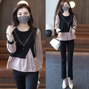 • 宝贝名称: 爆款衬衣女时尚遮肚子假两件上衣秋装短款衬衫设计感洋气质打底衫