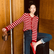 • 宝贝名称: ONE AGAIN 条纹针织衫女秋季新款400g澳洲美利奴100绵羊毛短开衫
