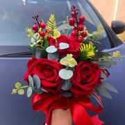 • 宝贝名称: 婚礼新娘手捧花结婚韩式森系仿真花diy材料 手工绒布玫瑰花球红色