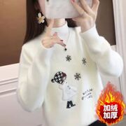 • 宝贝名称: 半高领水貂绒毛衣女2022秋冬新款套头短款内搭卡通加绒针织打底衫