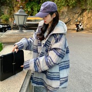 • 宝贝名称: 假两件连帽格子夹棉毛呢外套女秋冬加厚宽松慵懒风中长款呢子大衣