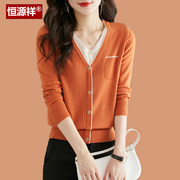 • 宝贝名称: 恒源祥假两件开衫毛衣外套女2023新款春装羊毛V领针织小个子上衣