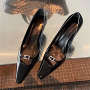 • 宝贝名称: 朴彩英rose同款黑色漆皮高跟鞋2023年新款御姐钻扣方头细跟单鞋女