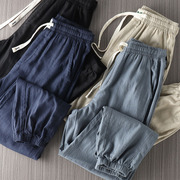 • 宝贝名称: 出口荷兰订单100 亚麻男士春夏松紧腰束脚休闲裤薄款透气舒适长裤