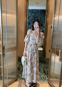• 宝贝名称: EVNSTYLE 纯欲天花板~气质两穿茶歇印花连衣裙女一字肩收腰吊带裙