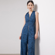 • 宝贝名称: 春夏新款蓝色豹纹露肩前拉链修身高端女夏连身裤时尚直筒宽裤长