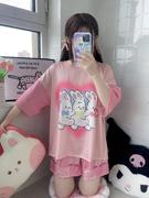 • 宝贝名称: 夏季卡通睡衣女冰丝薄款短袖短裤圆领可爱少女家居服套装可外穿