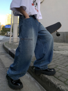 • 宝贝名称: Aurocean 牛仔裤 水洗做旧重磅四季收腰阔腿堆堆裤简约大版长裤