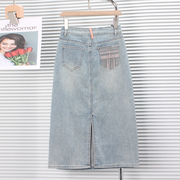 • 宝贝名称: 蓝舟2023春夏季新款欧货浅蓝怀旧色显瘦开叉中长裙高腰牛仔裙女薄