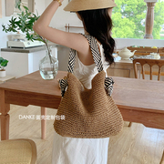 • 宝贝名称: ins韩版简约休闲单肩草编包大容量夏季 法式度假沙滩编织包水桶包
