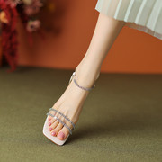 • 宝贝名称: 香港【设计师】Caiem Kaiet 闪耀迷人⭐粗跟7cm 一字带高跟凉鞋女