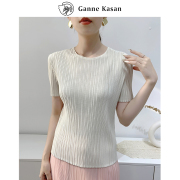 • 宝贝名称: 三宅褶皱T恤女洞洞上衣2023夏季褶皱衣服小众设计感圆领修身显瘦