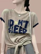• 宝贝名称: 正品哥弟专柜外贸原单冰丝针织T恤女短袖夏宽松T恤不规则字母上衣
