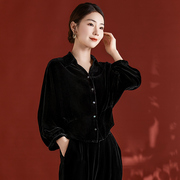 • 宝贝名称: 真丝绒外套女秋冬2023新款时尚气质黑色宽松通勤上衣高端长袖衬衫