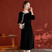 • 宝贝名称: 复古真丝绒洋装女2023秋冬季新款中式小香风正式场合桑蚕丝裙子
