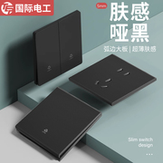 • 宝贝名称: 国际电工86型黑色肤感开关插座面板家用墙壁暗装16a一开五孔带USB