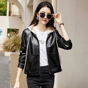• 宝贝名称: 海宁真皮皮衣女短款2023新款时尚洋派宽松机车绵羊皮夹克连帽外套
