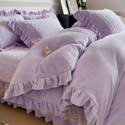 • 宝贝名称: 冬季加厚珊瑚绒四件套牛奶绒被套蕾丝花边床盖加绒法兰绒纯色冬季