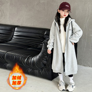 • 宝贝名称: 女童加绒外套秋冬款2023新款儿童洋派连帽长款冬装中大童开衫厚棉T