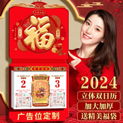 • 宝贝名称: 2024年挂历定制中国风红色新年创意双日历大号福字万年历定做家用挂墙新春黄历手撕日历公司企业广告礼品订制
